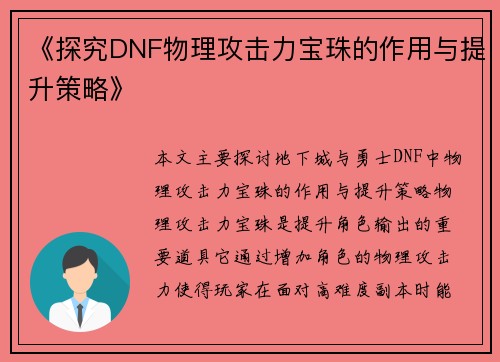 文章摘要:尊龙凯时公司排名第一的镇宅花在企业发展与文化传承中的作用深远而独特,具有象征性的意义和实际的促进作用。本文将从四个方面详细探讨镇宅花如何助力企业的长期稳定发展以及在传承企业文化中的重要地位。首先,镇宅花通过象征意义强化了企业文化的核心价值,帮助公司凝聚员工共识,提升集体认同感;其次,镇宅花作为企业文化的重要载体,促进了企业内部的团结与合作,激发员工的工作热情与责任感;再次,镇宅花具有提升...